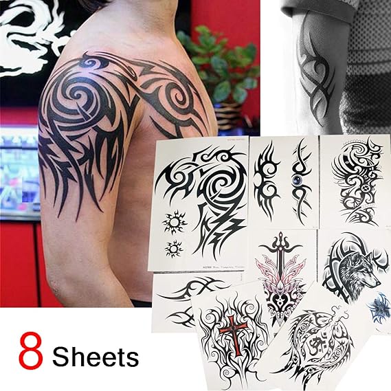 Kotbs 8 Sheets Temporary Tattoo Waterproof Large Temporary Tattoo Paper Body Art Temporary Tattoo Men Tribal Totem Tattoo Sticker Make Up Fake Tattoo Sleeves Amazon Ca Everything Else